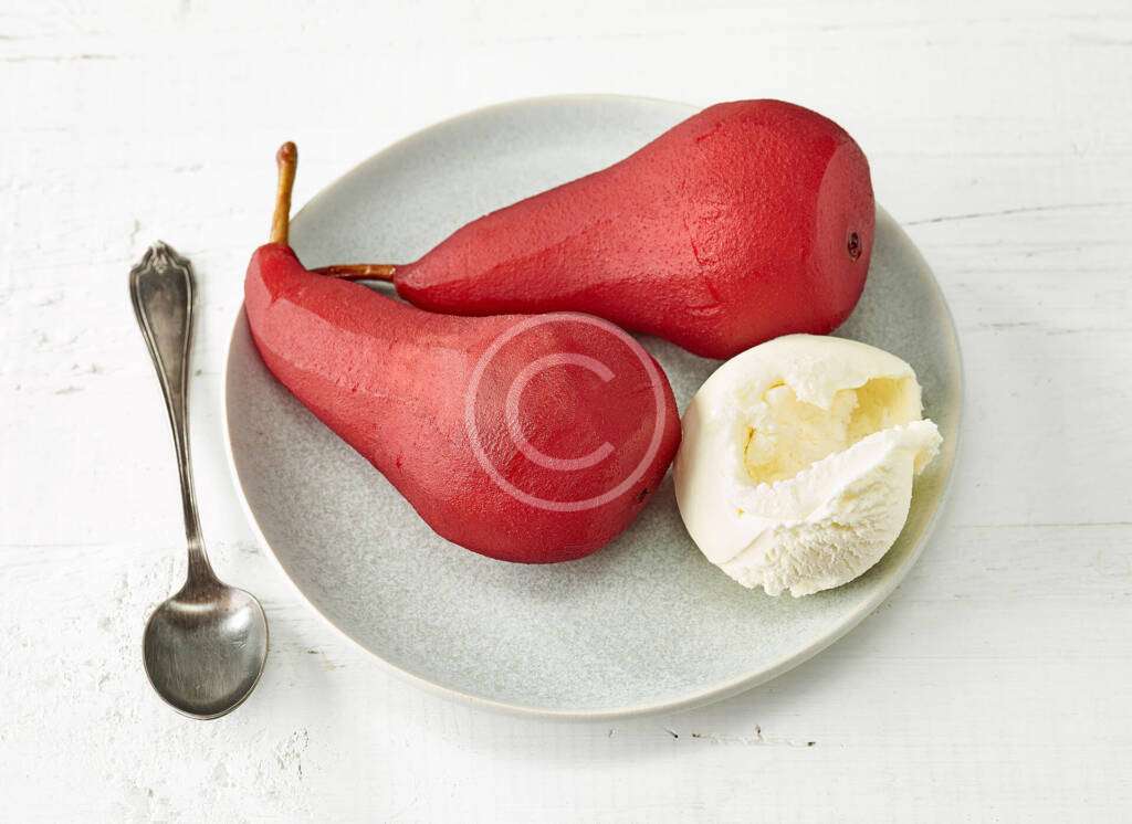 Pears poached in red wine